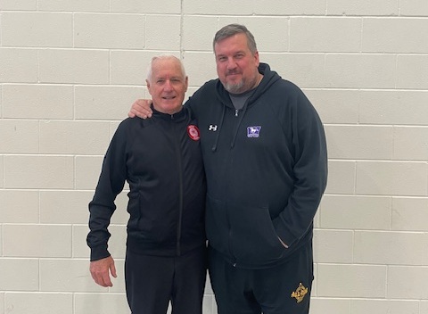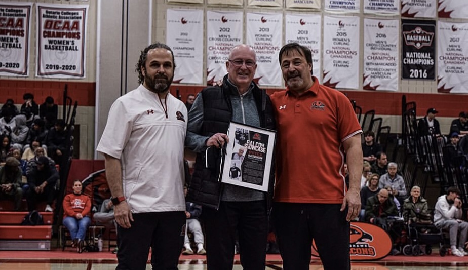 Peter Malcolmson's community service award presented to him at the Fanshawe Falcon showcase game for local boys high school/prep basketball players.